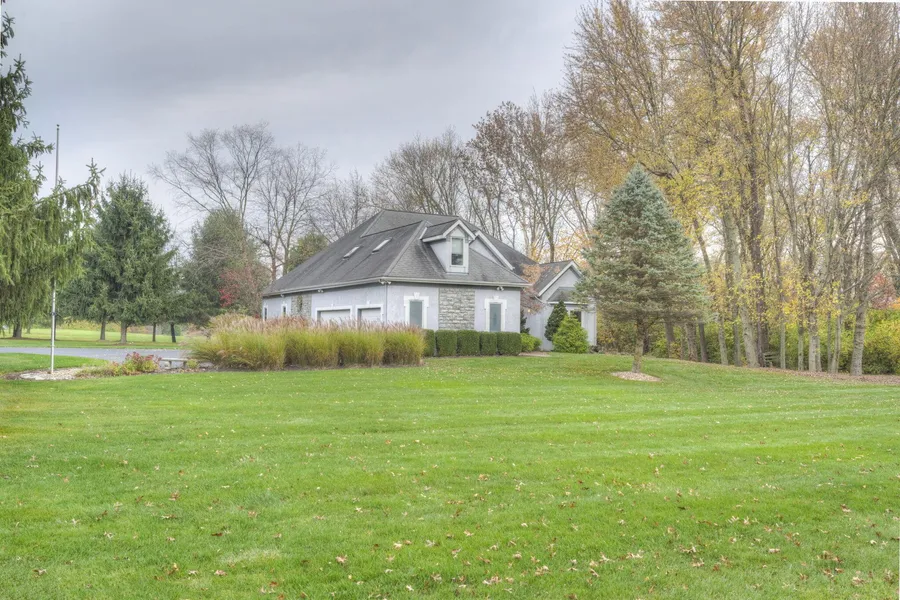 A Home for the Holidays! Tucked away on a quiet corner in Delaware you'll find this one-of-a-kind custom-built ranch on 1.07 acres just 1 mile from US 23! Enjoy a scenic commute along the Olentangy River in this sanctuary from the city! Featuring 2,268 square feet with 3 bedrooms 2 full bathrooms, a truly ''great'' room, home office, transom windows, 10-foot ceilings, primary suite with huge walk-in closet, spa-like ensuite, double sinks and is separated from the 2nd and 3rd bedroom, first floor laundry, deck off the eating area in kitchen area overlooks a park like pond with fountain! Dry as a bone poured basement, central vac, skylights, 3 car sideloading garage with wide driveway perfect for your boat or RV! Ask about the ''secret bonus room!'' Your next chapter starts here!