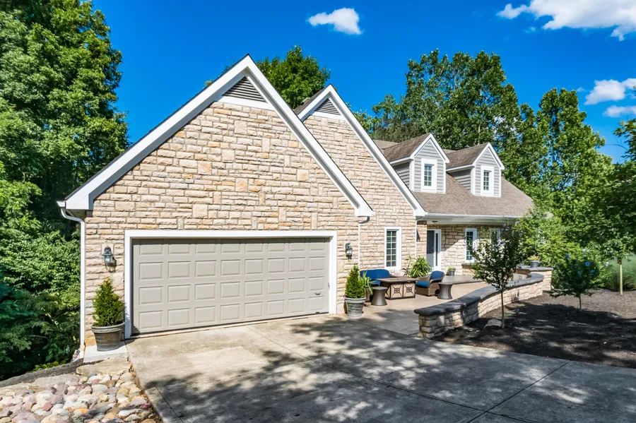 A private sanctuary awaits in this stunning one-of-a-kind home on a cul-de-sac lot backing to private wooded ravine. 5,082 SF (auditor incorrect), 4 BR, 3 full baths. Light filled 2 story great room open to chef's kitchen with stainless steel appls, granite counters, hearth room & access to large deck overlooking the wooded setting. Den features glass French doors. Convenient 1st floor laundry room. 1st floor master with ensuite spa-like bath. 2 additional BR upstairs featuring a loft, great closet space & a full bath. Additional entertaining space can be found in the walkout lower level featuring a guest suite with bedroom, full bath, family room, flex space & workshop. Stone stairs lead to an outdoor living area overlooking the stream. Olentangy Local Schl District.