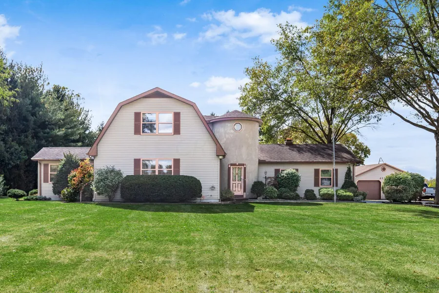 Unique home built in 1987. Being sold ''as is''. Only 2 families have owned this home. Quality built but ready for changes. All carpeting has been removed. Some true hardwood flooring. 6 panel doors. Round foyer and 2nd floor den. 2 spacious bedrooms on 2nd floor with huge storage areas in addition to standard closets. 3-4 season room off living room. Spacious 2 car garage attached, and 3-4 car detached with a tool room. Home features a total of 3 full baths, 2 on the main level. Primary bedroom on main level as well as first floor laundry with great storage. Unfinished basement with access to rear yard for great convenience. Country living but convenient to Dublin, Marysville, Downtown Delaware. Bring your decorator.