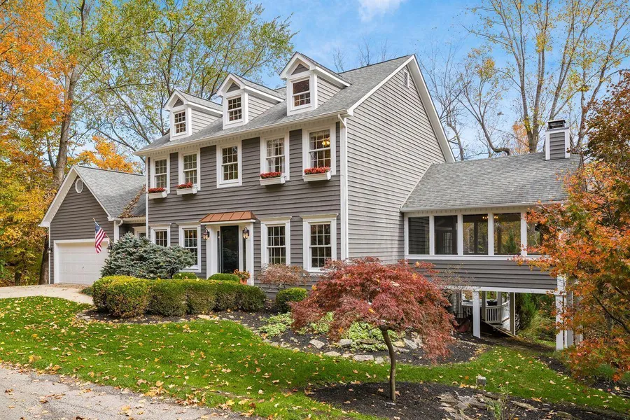 Spectacular, private setting - exceptional, custom-built home w/open floor plan, beautifully-finished LL and inviting outdoor living spaces. Hardwood flooring in the 2-story foyer continues into the study, dining room and kitchen. Kitchen includes granite, SS, expansive island w/seating, planning desk, pantry and eating area. The great room accesses the 3-season room w/beamed, cathedral ceiling and stone fireplace. Upstairs, the primary suite offers a beautiful space to relax and unwind. 3 additional bedrooms & a full bath complete the 2nd level. The finished, walk-out LL includes a 5th bedroom/multi-purpose room, full bath & huge rec. rm. w/bar area. Fabulous outdoor living spaces...tiered deck w/hot tub & fire pit! 2-car garage w/large workshop. Stunning home, perfect for entertaining.