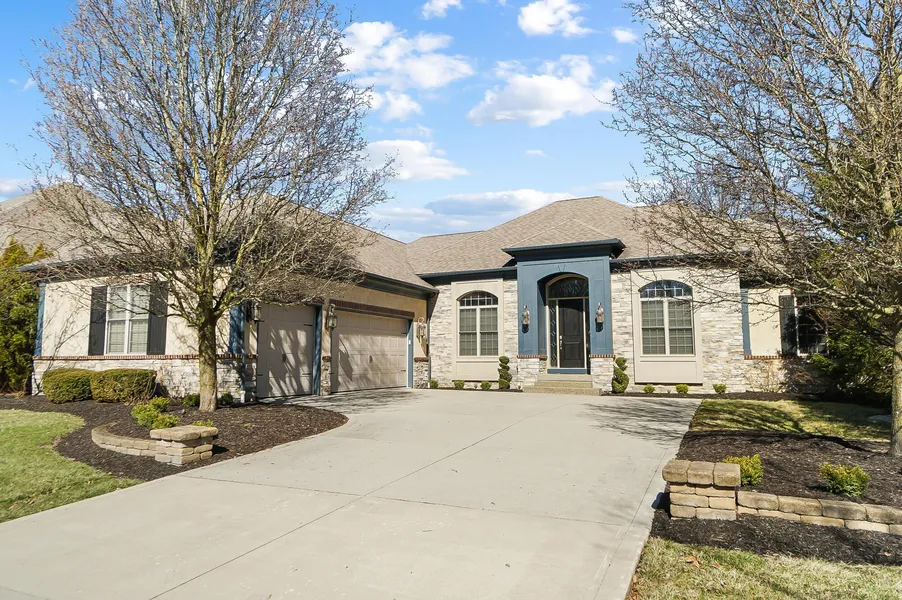 Mansard Estates showcases the exquisite Romanelli & Hughes formal model home, a captivating residence that spans over 4,000 sqft in an open ranch floorplan. Upon entering, 11-foot ceilings & wide plank hand-scraped wood flooring seamlessly flows thru the dining rm, great rm, & a gourmet chef's kitchen. The main floor is a testament to luxurious living, offering both space & sophistication. The kitchen offers 42'' cabinetry, granite counters, & central island. The lower level is a haven, featuring a wet bar, a rec-room, a theatre rm, & 4th bedroom with egress, & a full bath. The property also boasts a 3-car side load garage with an EV charger. The strategic location of Mansard Estates offers easy access to Hoover & Alum Creek, as well as to schools, shopping, dining & freeway connectivity.