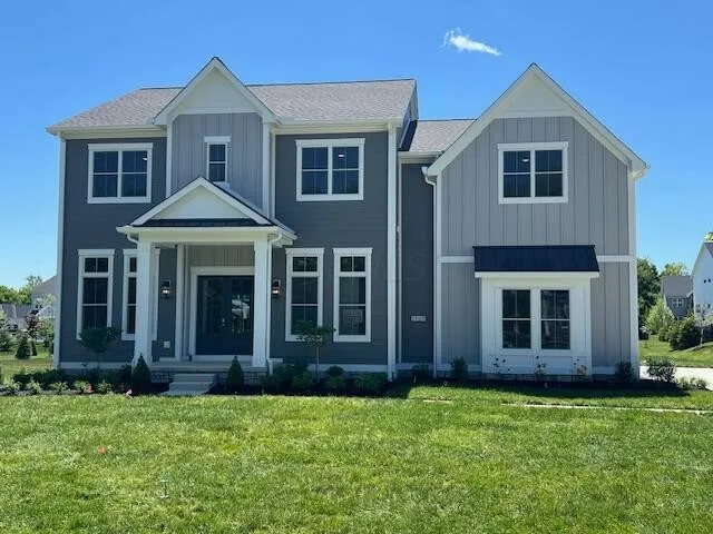 Discover elegance at Liberty Bluff; a stunning 5 BR, 4.5 BA home showcasing a beautiful entryway, 1st-floor den accented with stylish barn doors, and a coffered ceiling great room, creating an ambience of sophistication. The chef's kitchen delights with white cabinets, quartz countertops, and a premier gas range. An adjacent signature 'messy kitchen' includes additional sink and dishwasher, simplifying entertaining. Relish the outdoors on a covered patio with a fan, perfect for relaxation. A finished lower level offers a 5th BR, full bath, and a luminous rec room with egress windows. Retreat to the primary suite featuring an oversized tile shower, freestanding soaking tub, and dual vanities. Convenience of 2nd-floor laundry. Luxurious living awaits.