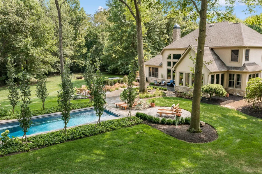 Experience unparalleled privacy and elegance in this outstanding custom home by Romanelli & Hughes, perfectly positioned on a 1.56-acre wooded, park-like setting within the gated community of Sage Creek, just minutes from Hoover Reservoir. This fabulous design is exceptionally light, bright, and open, featuring soaring ceilings and gleaming hardwood floors. As you enter, a grand entry and formal dining room set the stage for your tour. The first-floor owner's suite offers a luxurious retreat, while the kitchen provides a chef's dream. The sunroom and two-story great room provide stunning spaces. A beautiful den, en-suite, and Jack-and-Jill suite on the second level offer comfort and privacy. Wonderful outdoor oasis with patio, saltwater & heated pool and hot tub. This home is a true 10+!