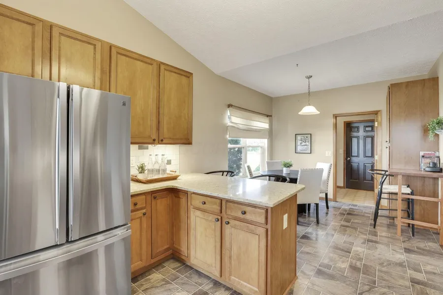 Desirable one-story home that offers over 4,000 sq.ft. of finished living space with 3 bedrooms and 2.5 bathrooms. When you enter the home, there is a vaulted living room with abundant natural light and an open feel that flows seamlessly into the dining room. The updated eat-in kitchen features quartz countertops, tile backsplash, stainless steel appliances, a gas cooktop/oven, and a built-in pantry for ample storage. Off of the living room there is a first-floor office that includes custom built-in cabinetry and shelving. Down the hall there are 3 bedrooms and 2 full bathrooms. The private owner's suite is a generous space, and the ensuite bathroom boasts a spacious walk-in shower with rain head and double sink. Downstairs, the fully finished basement features a custom-built bar, rec space, living space and a half bathroom . The 2-car garage is extended with an additional 4 feet of depth, perfect for extra storage or larger vehicles.Enjoy peace and privacy with a backyard that backs to green space. Conveniently located just minutes from Polaris shopping and dining, with quick access to US-23, I-71, and I-270 for easy commuting.This move-in ready home truly has it all—single-floor living and unbeatable location. Schedule your showing today!