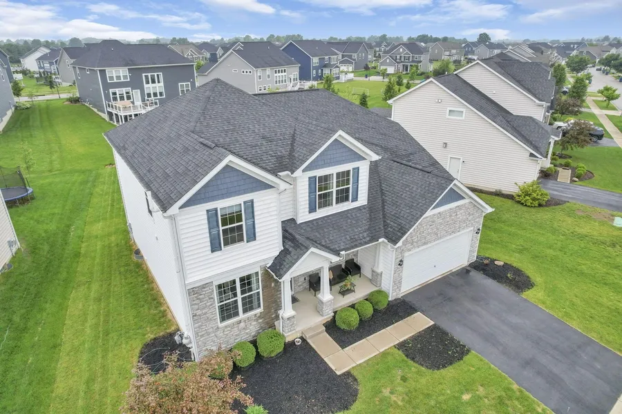 Offering a credit to support rate buy-down for buyers! Highly desirable Glenross community with Olentangy Schools! This spacious home offers over 4,600 square feet of finished living space, featuring 4 generously sized bedrooms—multiple with en suite bathrooms—4.5 baths, 3-Car Garage ( tandem space behind), an EV charger and whirlpool fridge in garage. The open-concept kitchen and living room are ideal for entertaining, with granite countertops, a tile backsplash, stainless steel appliances, a gas range, a curved island with bar seating, and a dining area with space for a full table. Sliding doors off the dining area lead to a beautiful brick paver patio, perfect for outdoor relaxation. The first floor includes a convenient laundry room, a formal dining room, a private office/den/flex room, and an additional flex space off the kitchen staged as a pocket office. Upstairs, a spacious loft ...