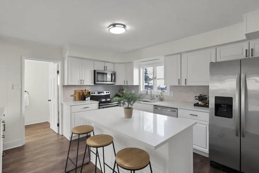 This beautifully renovated home near Mingo Park combines modern updates with timeless character. The brand-new kitchen features white cabinetry, quartz countertops, a tile backsplash, center island, and stainless steel appliances-perfect for any home chef. Enjoy low-maintenance brand new LVP flooring throughout most of the first floor, two fully updated bathrooms, and the convenience of first-floor laundry. The first-floor bedroom or office offers a cozy fireplace with the original tile surround, adding warmth and charm. Upstairs are two additional bedrooms with new carpet, split systems, and a tastefully remodeled full bath. Outside, the two-car detached garage is a mechanic's dream-extra deep, with automatic openers on both sides and loft storage. Major updates include new roof, new paint, new kitchen, new flooring, new fixtures, updated plumbing with new supply lines, newer windows, a...