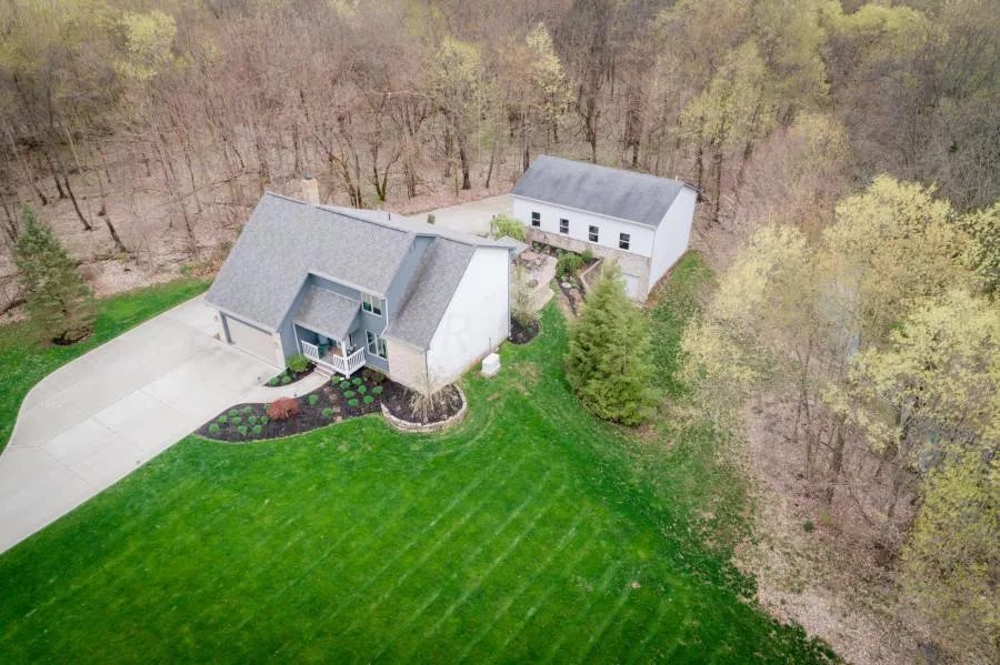 Exquisite custom estate with one-of-a-kind improvements make this home a true paradise. One owner. Homes like this do not hit the market often; do not miss your opportunity to own a 'gem' when it comes to quality, lifestyle, location, more. Near New Albany and Westerville. Nestled in the edge of the woods with a beautiful stream, expansive lawns, incredible (engineered) outbuildings (18+/-cars). Private luxury outdoor kitchen and landscaping features work beautifully with interior living spaces. Great room flows to eat-in kitchen, sunroom, formal dining, family room. Wet bar in bsmt. Improvements would be *very* hard to replicate. Each outbuilding is an absolute must see with over the top features. See docs for sizes. Geothermal, Generac whole-house generator, more. Must see!