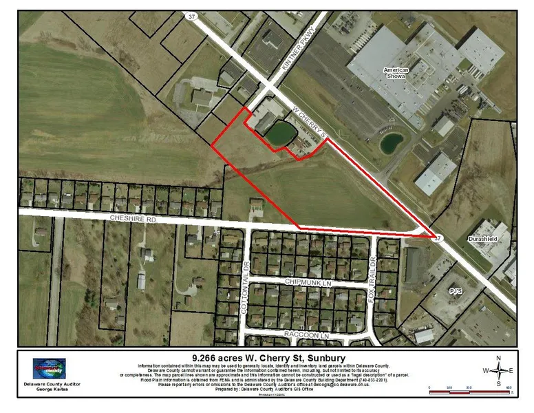 9.266 acres of commercial land zoned C-2 in Village of Sunbury with over 1,700 feet of road frontage along W. Cherry Street (State Route 36/37) and Cheshire Road. Land is located 3 miles east of I-71 and State Route 37 interchange and 1/2 mile west of State Route 3. Great development potential with Simon Tanger Outlet Mall in close proximity. Agent related to owner. Agent owner.