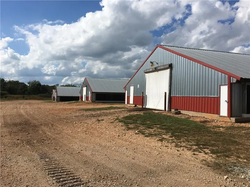 Tyson Noel farm with active contract, seller is unaware of any required updates. 6 - 43x500's built in 2006, 80 acres (fenced/cross-fenced to support cattle/livestock), 7 lb target weight, 49 day flocks, gross income is $300-$325k annually. Multiple outbuildings, horse barn(s)/shop, lean-to, man-cave area/shed, hunting area in the back of the property, private/secluded area. 3 Br house with a new roof (2017).