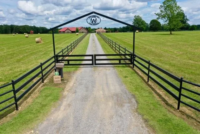 40 Acres is fully fenced. Yard has black pipe fencing and the perimeter is newly barb-wire fenced. All electrical lines are buried.