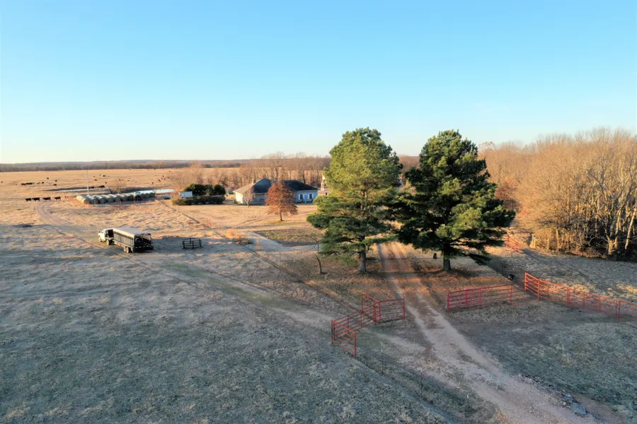 Entire property is barb wire fenced, with the majority of that being new. There are multiple pastures, 4 ponds, a live spring, and running creek. In addition to the water well for the home, a second, high producing well has been installed to provide excellent water to the 4 freeze proof automatic watering systems in place for the livestock. There is a large piped set of working corrals, 15 Ton overhead feed bin, diesel tank, a cement floored 40 x 60 shop. Everything is in place to get your ranch running.