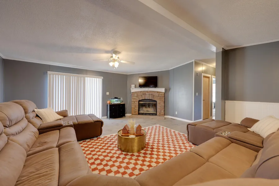 Modern Elegance Meets Acreage & Lake Access close by. Step into a world of space, style, and serenity. This beautifully reimagined residence combines a fresh, contemporary interior with the sprawling freedom of 1.5+ private acres. From the moment you step onto the massive, freshly stained front porch-complete with a cooling ceiling fan and designer lighting-you'll know you've found something special. Inside, the home breathes with an open-concept layout and an abundance of natural light. Every inch has been curated for modern living, featuring all-new flooring, a crisp neutral palette, and updated bathrooms. With four oversized bedrooms, there is ample room for family, guests, or a dedicated home office. Garage features a finished multipurpose room with 1/2 bath. owner/agent