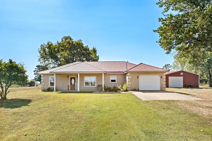 Come home to Colcord, OK! Great country setting yet close to town! This property sits on 1.45 ac mol, split floor plan with 3/2, open and spacious formal, living area, kitchen, the beautiful property is fenced in has a shop, storage building and 2 car garage, enjoy outside and entertaining with covered patio and porch! There is a storm shelter, the septic is new, has a metal roof, come see today!Also, a 1 year home warranty with AHS is being offered!