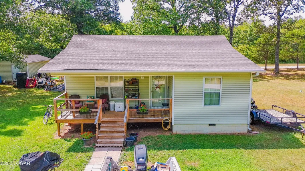 Nestled in the peaceful Shadowrock addition of Wyandotte, this charming 2-bedroom, 1-bath home on just over half an acre is the perfect retreat for anyone craving a slower pace without giving up lake life. At 846 sq ft, it's cozy and efficient, with a gas wall heater for warmth, window units for cooling, and a layout that feels simple, comfortable, and inviting. Step outside and you'll discover even more to love-a 22' x 11' enclosed outbuilding for hobbies, storage, or a creative getaway, plus room to garden, relax, or host friends under the wide Oklahoma sky. Shadowrock is beloved for its natural setting and access to Grand Lake. While this property itself does not include docks or slips, fishing off boats throughout Shadowrock is a favorite pastime. For launching, Flint Fire Marina is just minutes away, giving you quick and easy access to the water when adventure calls. Whether you're looking for a full-time home, weekend getaway, or investment property, this inviting residence offers the storybook charm of small-town living with the bonus of Grand Lake at your fingertips. Disassembled car port and metal steps off back door do not convey with sale.