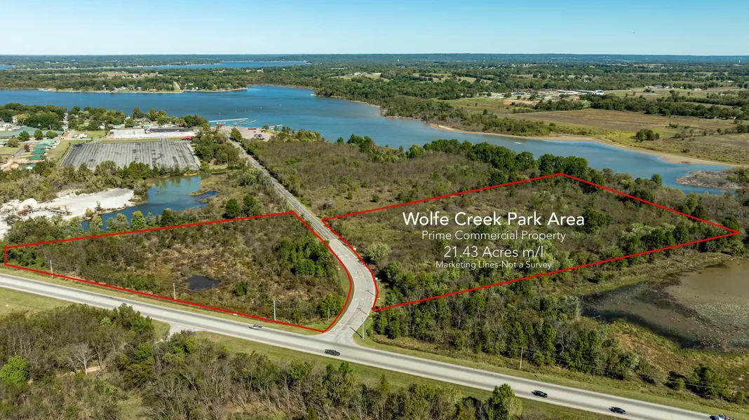 COMMERCIAL POTENTIAL at this property near WOLF CREEK PARK & BASS TOURNAMENTS off 16th street. Located very close to GRAND LAKE PUBLIC ACCESS & BOAT LAUNCH. Highway 59 frontage & excellent street visibility. This land is located on both sides of 16th street. One side contains 8.093 acres M/L & other side contains 13.37 acres for total of 21.43 acres M/L for sale and priced at $500, 000.00. (Surplus land will need permits/approvals/written consent before construction of any structures)