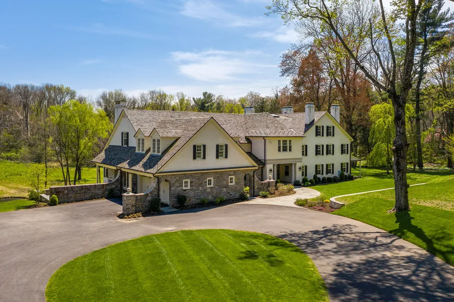 ***Please view this incredible property's 3D tour at: https://my.matterport.com/show/?m=72noCY1QJAM*** Two Sub-divided parcels including 1 build-able lot. This incredible property features a rare package of an impeccably renovated, restored and expanded historic residence with the ultimate attention to quality, superior materials and detail by Archer Buchanan and Griffith Construction, set on an absolutely breathtaking private 9+ acre lot with endless views and spring-fed pond . Stunning, light-filled designs are featured throughout, seamlessly blending the integrity of the original stone structure with the solid block constructed addition with new Italian tile roof. This special property will please the most discerning buyer featuring exquisite architectural designs, millwork and moldings, deep set and panoramic windows capturing the grounds at every turn, gracious Parlor, Living and Dining Rooms, a true Gourmet Chef's Kitchen, Breakfast Room, Family Room with 2-story Coffered Ceiling, handsome Library with fireplace, 2 potential Home Offices, large Mudroom, Luxurious Master Suite, 6 additional spacious Bedrooms/ Au pair/ Nanny suite/ In-Law Suite, etc. , 4 additional marble baths, wonderful bright finished walk out Lower Level with Theater Room, Game Room, Gym space and Full Bathroom, and an elevator shaft servicing the home on all levels if desired. The site plan has also been designed to properly accommodate a second detached Garage off of the parking Courtyard, with roof tile and stone already purchased to match the main residence. All new high efficiency systems, electric, plumbing, insulation, lighting and more. Move right in and enjoy this one of a kind historic oasis, featuring every amenity and close to renowned schools, parks, trails, Wayne, Bryn Mawr, Center City Philadelphia, 90 minutes from NYC, Philadelphia International Airport, Trains, shopping, restaurants and more. LOW TAXES! Walk-through Tour!