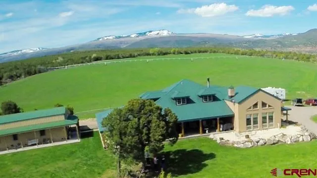 Gorgeous, secluded high-country ranch features a Colorado Western-style home with 360-degree views from Grand Mesa to the West Elks to the distant San Juans. The end-of-the-road location gives the impression of wide-open spaces for miles and the property borders BLM land on the north side. The spacious custom-built home is constructed of adobe brick and stucco. Its open, beautifully-designed kitchen overlooks a massive living room and a family room with a magnificent rock fireplace. The master bedroom suite includes a 30'x10' master bath and walk-in closet. Two additional bedrooms are on the main level with a fourth upstairs along with a large loft area and sauna. The home is an entertainers dream, fully equipped with covered patios that wrap the entire house, surround sound system, solid wood doors throughout and rock, log and metal accents. The 50'x100' barn has 1000-sq ft quarters for guests or ranch hands plus a loft and lots of space for equipment. It could easily be converted into a nice horse barn. The property includes a heated 20'x48' studio building that could serve for a multitude of uses. The field has been well-cared for and is 20-25% alfalfa with the balance in grasses. It's irrigated by a new center-pivot sprinkler and four new big gun sprinklers.