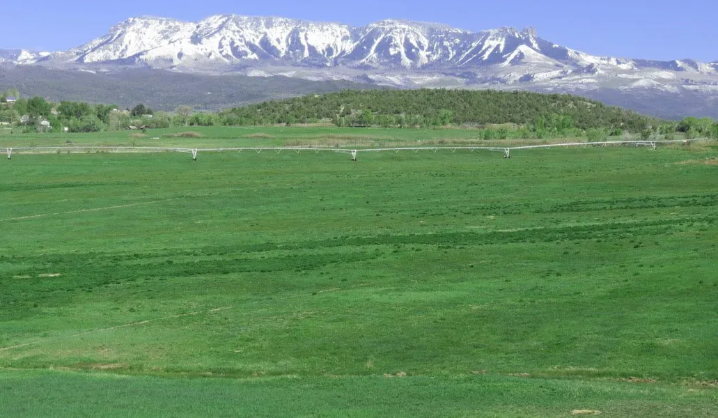 High Quality ranch property with very good water rights, sprinkler irrigated hay fields, secluded mountain view building sites, 2 domestic water taps and year around creek. Raise a couple hundred tons of hay and have plenty of winter pasture. 120 acre feet of Crawford Reservoir, 95 shares Crawford Clipper Ditch, 2 Crawford Mesa water taps. 1,328sf ranch house, concrete block shop with 3 phase electric, wood stove and air compressor. No conservation easement. Valuable gravel resource for the future, measured by the County. Over 100 acres of pines, cedars and mixed vegetation. Deer and elk hunting. Build a house in the trees on the hill overlooking the green fields.