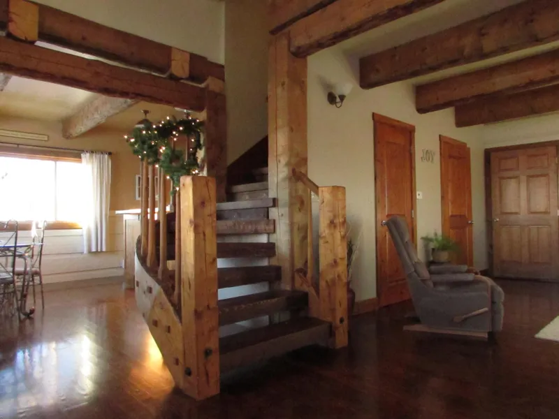 What a find! This picture perfect place has everything you need. Home includes custom wood throughout, log sided exterior with stone, large custom deck with impressive views. Interior features pine flooring and awesome curved wood staircase. If that wasn't enough, the grounds are rich with landscaping, garden area, fenced irrigated acreage, detached garage/shop, and did we mention views?! The ideal country haven. Welcome home.