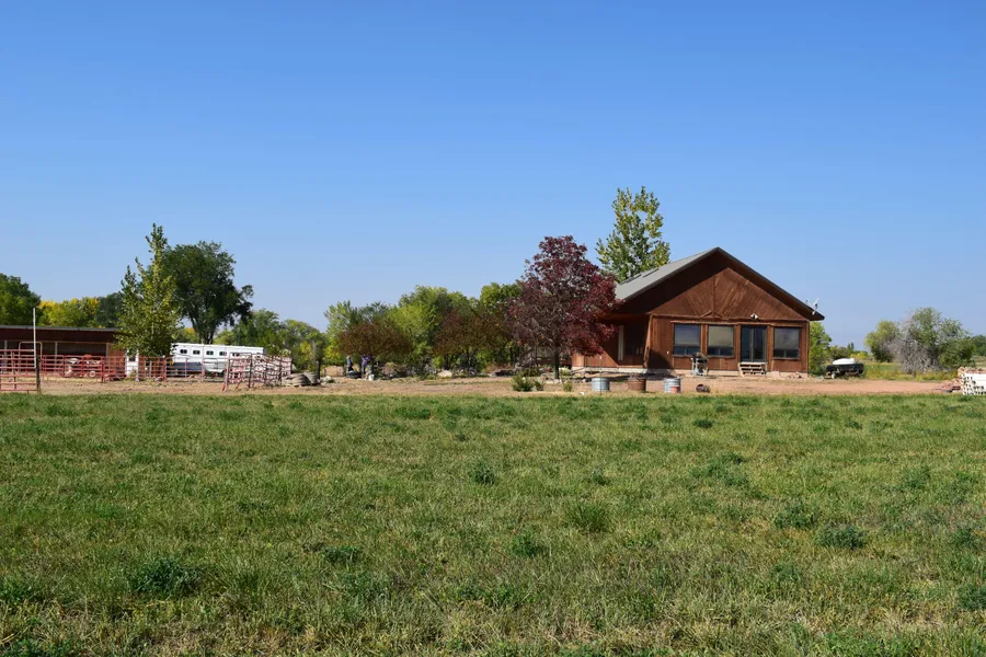Gorgeous view - Prime location.........quality built 3 br, 2 ba ranch home with full basement (extra bedrooms). New wrap around Trex Deck to tak in the gorgeous Mountain Views to the East. Newer appliances, tile and carpet flooring. Open concept with large picture windows and skylights. Nice master suite with 5 piece bath/jacuzzi tub. Oversized 2 car (945 sq. ft) insulated garage w/ample storage, 3 stall loafing shed/tack shed with enclosed concrete floor and riding arena. 8.1 acres with approx 7 irrigated. 175 Shares Fire Mountain Irrigation. Alfalfa/grass hay pastures irrigated with gated pipe (included). Landscaping includes Crabapple, purple ash, poplar and pine trees. Ample room for horse trailers, stock trailers or RV's.