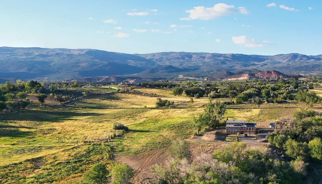 Beautiful small ranch just two minutes west of Cedaredge, Colorado. The property has a lovely home on a secluded irrigated acreage with views forever. The spacious home features a main floor master suite, a huge kitchen and a light-filled dining room that walks out onto an expansive deck. The second floor has two bedrooms and a full bath. The basement has a self-contained apartment with kitchen, living area and bedroom with separate entrance. Solar panels and extensive southern exposure help the heating bills stay low. The 28 acres is largely in irrigated pasture sloping gently to the south and the parcel is partially edged by mature shade trees.