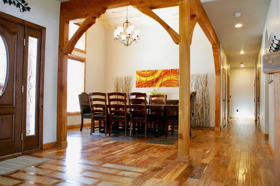 Mountain luxury home on 15 acres--custom home with stunning views Dream home with dream views! This custom-built mountain rustic home is a luxury retreat in a stunning location just a couple of miles southeast of the small Colorado town of Crawford. With 5 bedrooms and 5 baths and 5,325 square feet of living space, this home has plenty of room for family and guests. Situated on a 14.89-acre lot, this parcel has roughly 6 irrigated acres for hay production, horse pasture, and greenery, and only a mile away from the nearest store and a couple of miles to the bank, church, or the Montessori school. The views from this property are just terrific, with stunning vistas of Needle Rock and the West Elks Wilderness laid out in front of the property. Quality construction on this mountain home is like Aspen or Telluride homes The quality of construction in this home rivals that of high-end homes in Aspen and Telluride at a fraction of the price. It features 28-foot open-beam ceilings with massive Douglas fir timbers; over 2,000 square feet of spacious balconies; a custom kitchen with brand-new high-end appliances, including a 6-burner Viking range; a beautiful two-sided gas fireplace; wet bar and wine bar; 5-piece master bath with huge walk-in closet; theater room; 4 guest bedrooms; oversized 3-car garage; spacious dining room; and walk-out basement. Incredible recreation opportunities on Colorado mountain home for sale--GMU 53 and 63 Crawford is known as "recreation central" with Crawford Reservoir, a 344-acre impoundment, less than a mile from the property. Anglers can catch trout, bass, perch, and pike, and it's a water-ski lake as well. Hunting for elk and mule deer in GMU's 53 and 63 is excellent, with hunters taking trophy-class game from the surrounding area due to access to thousands of acres of BLM and National Forest lands. Black Mesa, just a few miles south, is a favorite snowmobiling destination, as well as the Grand Mesa to the north. Skiers have a choice of going to Crested Butte a little more than 1.5 hours to the east, Aspen two hours north, or Telluride 2 hours south. It's relatively close access to fly-fishing in the Gold Medal waters of the Gunnison River, riding in the West Elks, and even taking a wine tour in the nearby vineyards in Paonia and Hotchkiss. Lifestyle property with tremendous assets-climate, setting, quality construction This home has a unique combination of assets that make it very appealing. It sits at approximately 6,500 feet in elevation, ensuring an ideal climate. Not too hot, not too cold, and low in elevation for those who may have difficulty at higher elevations. It's only a mile to the nearest store, and two miles to Crawford, 11 miles to Hotchkiss, so it has easy year-round access. The views are just stunning-some of the most impressive views you'll ever see-and it offers access to all kinds of recreation. The quality of construction is excellent and you'll see a lot of value in this home!