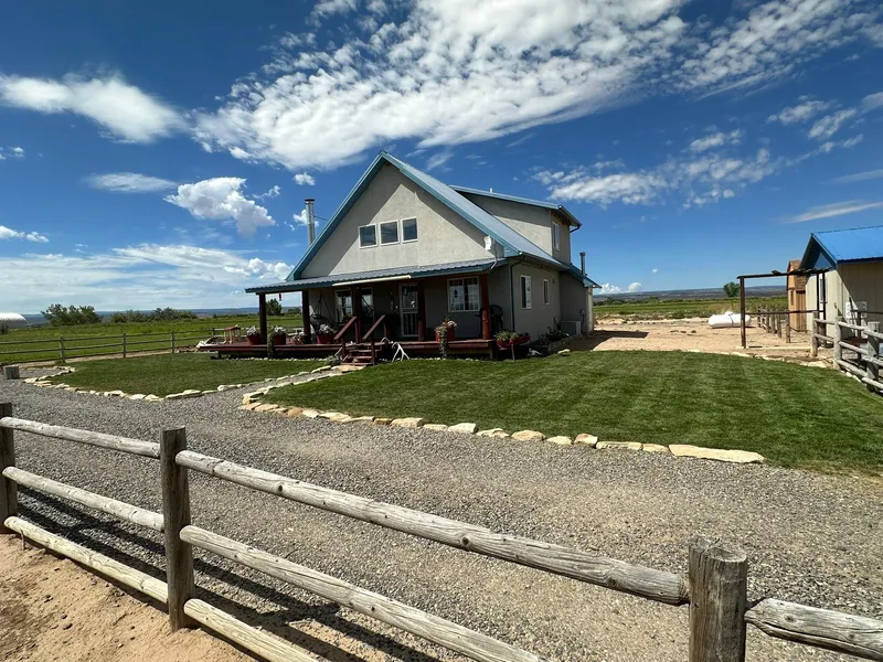 Delta County Colorado farm located on California Mesa, Highway 348. Farm consists of 44.5 acres, 38 acres irrigated via underground delivery system and gated pipe. 38.2 shares of water through UVWUA. Property has its own headgate. Improvements include a 1534 sq ft, 2 bedroom 2 bath home with an office that could easily be converted into a third bedroom. Home was built in 2000. Stucco exterior with nice covered front porch facing the West Elk's to the E and San Juans to the SE. The home is 1 1/2 story with a loft area master bedroom. Tongue and grove wood ceiling, tile floors, wood trim, maple cabinets and dedicated laundry room. Heating is provided by forced air furnace and wood burner. Cooling by central A/C. Other improvements include workshop/tack room with wood burner, equine stanchion, hitch rail, horse shelter, round pen, catch pen and open ended round top building with concret...