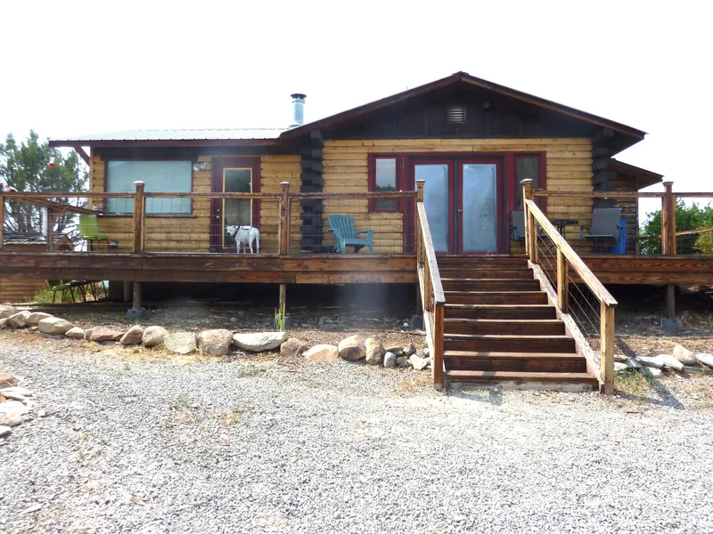 Can't even explain the breathtaking, 360 beautiful mountainous views from this rustic home. The front entrance has a large deck that faces needle rock mountain. Large windows brighten every room of this 2 bedroom one bath home. The charming kitchen, dining area, master bed room and living room all open onto the deck. There is an outside shower on the back side of the house. Chicken coop and cabin are included. Property is a short drive to Crawford Reservoir and National Forest.