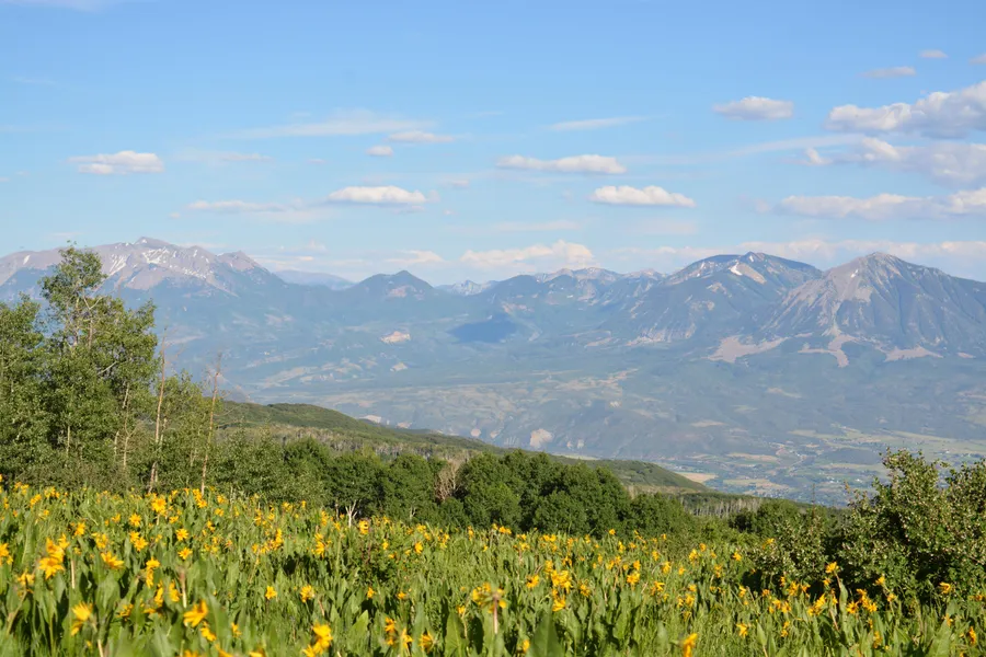 Sitting at over 9000 feet elevation with Aspen trees galore, natural springs and ponds tremendous views of the West Elks range to the East and Grand Mesa to La Salle mountains to the West.