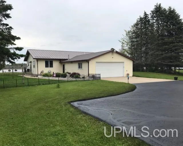 Just Like New Awesome peaceful, serene setting for this newer, extremely well maintained home on the Whitefish River bowl! Watch the boats, kayaks, canoes and wildlife from your new deck! The homeowner has done an impeccable job with improvements. Facing the river there are plenty of windows to let in the light and allow you the best view. There is ample storage throughout the home. A heated attached garage with pull down attic access also has water and electricity for convenience and a detached 30x24 garage to store your toys, mower, snow blower, lawn furniture. Blacktop driveway has just been seal coated. Other amenities include, natural gas, fenced yard, firepit, sidewalks, tasteful landscaping, 10x48 deck to enjoy the view, boat ramp, 23x6 breezeway, 2 zoned heating, owned water softener, and nice woodwork throughout the home. Inside you will find gas fireplace, an open concept kitchen with rich looking cabinetry, quartz countertops and a peninsula seating area. If you are looking for relaxed living, come take a look! Seller will be accepting offers until August 20th with decision to be made on August 21st.