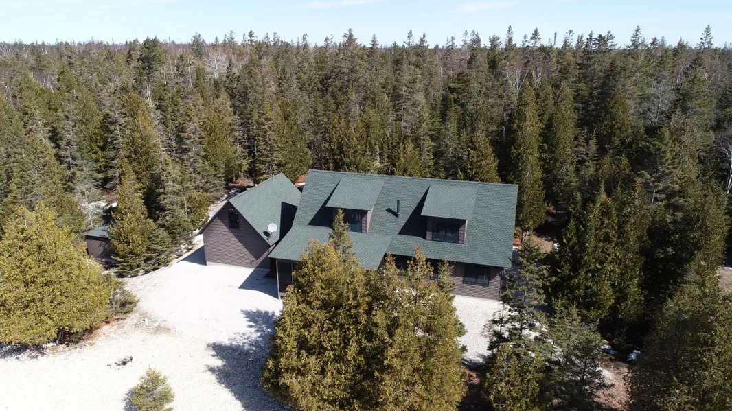 Lake Michigan masterpiece in the beautiful Upper Peninsula. Located on the Garden Peninsula this custom-built home gracefully rests on 24.22 acres and over 550 of Lake Michigan lakeshore with a southerly exposure for lots of sunshine. The access is by private road and all homesites in the area are large and private. Built in 2015 by local craftsman Dennis Winter with painstaking attention to detail this charming north woods cabin will bring you to a state of total rest and relaxation. Quality weather resistant exterior finishes make caretaking a breeze. The main level features a large entry and laundry room with coat storage and attractive tile flooring, and a custom kitchen with granite counter tops with stainless appliances. The kitchen flows into the dining and living areas that are partially separated by a hand laid stone fireplace with a gas insert. Also on the main level is a spacious master suite with connected office and master bath. The bath has a gorgeous, tiled shower, deep soaking tub with picture window and large vanity. A large screened covered porch provides more space for entertaining. Upstairs, there is a spacious bedroom with window seat/daybed and large multi-purpose room that serves as both a 3rd bedroom and second level den. All interior cabinets, flooring, walls, trim, ceilings, windows, and doors are fit and finished to perfection. This home is off-grid, but you will find it easy and comfortable to live with the new Kohler 12kW LP generator with 16 deep cell sealed batteries (both replaced in 2021). A 1000 gallon LP tank, drilled well, and septic system complete the off grid experience. Internet is provided by satellite and is able to handle home office needs and easily stream movies. The detached garage has a large room above for storage. The home builder can handle maintenance needs and is available for alarm calls. If privacy, nature, and off grid living are calling you to the better peninsula then come and take a look.