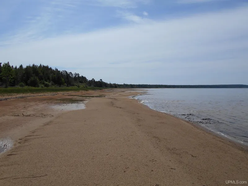 Two sand beach lake front lots fronting on US Highway 2. High Traffic volume is a plus for potential commercial opportunities. Zoned both commercial/residential, you can live on one and locate your business on the other. Electric available, and there is a drilled well on site. Parcels are mostly cleared and ready for building. The two parcels are being sold as one, with a combined 345 feet of frontage and a total of 1.47 acres. Located on the north shore of Big Bay De Noc, which not only offers great fishing for small mouth bass, walleye, and northern pike, the warmer waters and sand beaches are perfect for swimming. Immediate Possession.