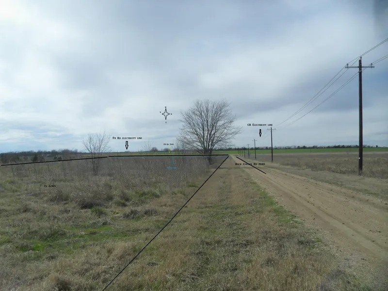 One of the four sides is fenced. Otherwise no other improvements to speak of. A community water line (Delta Co Municipal Utility District) runs along the FM road on the property. Electricity runs along the FM road on the opposite side and along the county road on the opposite side.