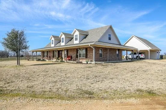 A must see! Stunning 3 bedroom 2 bath brick home with stone accents. Built in 2010, this home sits on 50.73 acres. All the bells and whistles are here! Spacious living area with gas log fireplace and beautiful wood flooring, extra nice kitchen with granite counter tops, gas cooktop and breakfast bar, split master with jetted tub, separate shower and dual sinks, upstairs bonus or game room. Wrap around porch with great views. 48 acre of fenced improved pasture with stock tank. Only 90 minutes from the DFW Metroplex...This one won't last long!