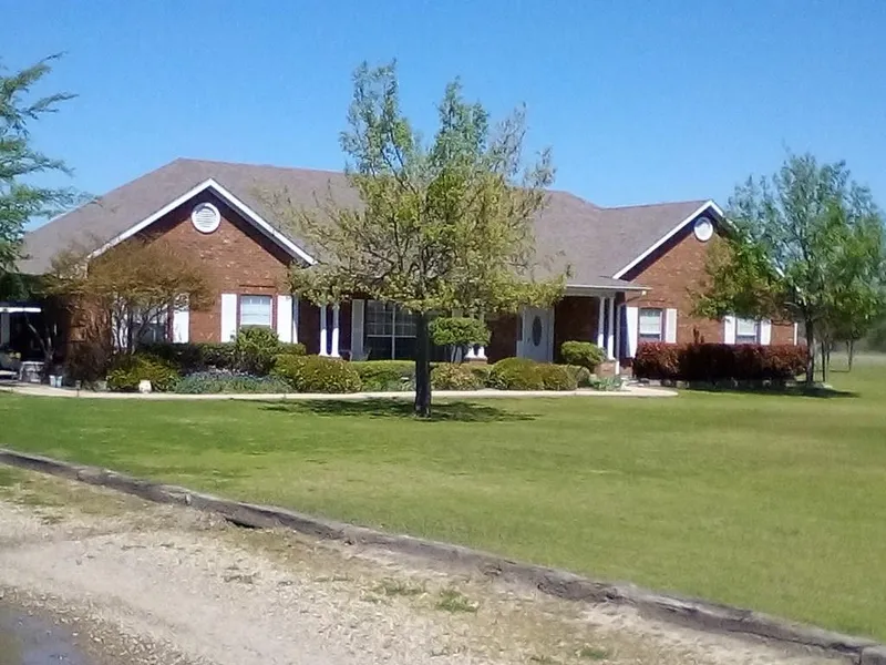 Three bedroom two bath with two car garage on 3 beautiful acres. Large living area, brick fireplace with gas log insert. Open kitchen and dining areas with breakfast bar and french doors leading to back patio. Master bath with his and her walk in closets, separate vanities, and whirlpool sauna bathtub. Over sized laundry room with walk in pantry. Beautiful gated entry with landscaped flowerbeds and large covered front porch. Barn and Workshop and both have electric.