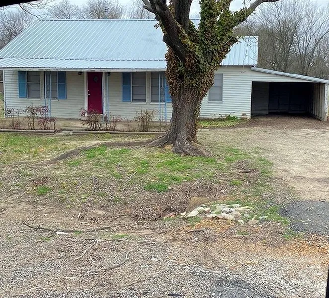 Two bedroom one bath home sitting just outside the City Limits on 1 acre fenced! Completely remodeled on the inside. Electric stove and refrigerator will convey. This is the perfect starter home! Circle drive with covered parking.