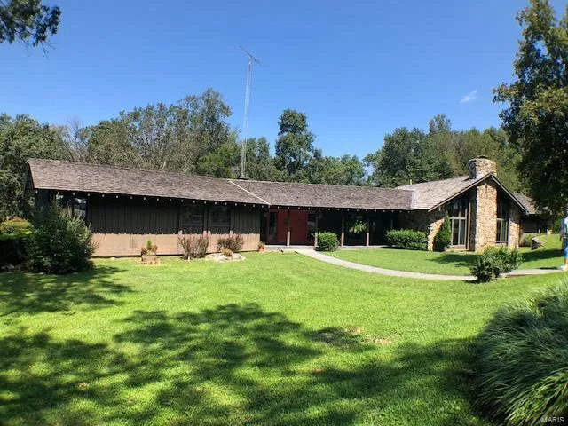 Beautiful contemporary ranch on manicured grounds with cedar batten board siding, field stone rock chimneys, cedar shake roof and stamped concrete driveway. Large windows and rooms throughout. (3) Zoned HVAC units. Large kitchen and dining area flows easily into the family and living room. Easy home for entertainment. 3 bedrooms, 3.5 baths and an office. All rooms have sliding doors to the deck. Inground pool with bath house, party deck and 53.3 acres for your enjoyment. 3 ponds- one is very large on the back side of the property. Property is perimeter fenced with some cross fencing. It's private and built with quality materials throughout. It also comes with 4 peacocks! There are 2 out buildings; 1 36 x 50 and the other 120 x 60. The smaller horse barn has 8 stalls, metal roof, electric and water hydrant & metal lot. Metal larger barn has stalls, electric, water hydrant, over half open and metal pipe pens. Located right off of blacktop for easy access to Salem or Rolla.
