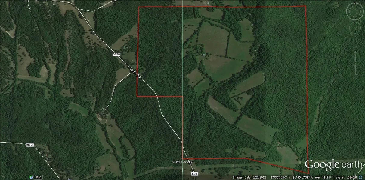 523 Acres of prime Ozark Highland with lots of water including a full time spring fed creek, wildlife pond, reliable spring, "Big Mouth" cave, about 140 acres creek bottom pasture, balance is heavy timber with some mature white oak and walnut trees. Some mixed woodland pasture; old house site w/barn, electric service at old house site. The spring that feeds the creek is reliable. Farm has been in the same family for over 140 years. Age forces sale. The fertile creek bottom land has been row cropped and could be again; currently in pasture. One acre of creek bottom will produce more than several acres of upland. ONLY $785,000.00. Located only about 5 miles East of Licking with county road access, 1 mile off of state highway. Come on now! What is wrong with this offering? Contact Ed Green Realty to set an appointment to look.