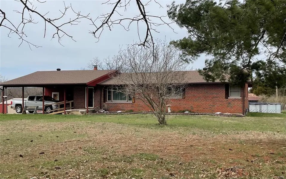 Beautiful Brick home with Red steel siding on 4 acres m/l with large circle drive. Features an inviting large fireplace insert with blowers for cozying up around the wood fire or choose the no hassle electric insert. There are 3 bedrooms and large bath with walk-in shower and the possibility of another bedroom where the half bath is and plumbing in floor for shower. Put your treasures in the built-in glass book cases. Walk out the back door to deck leading you to your own above ground pool.