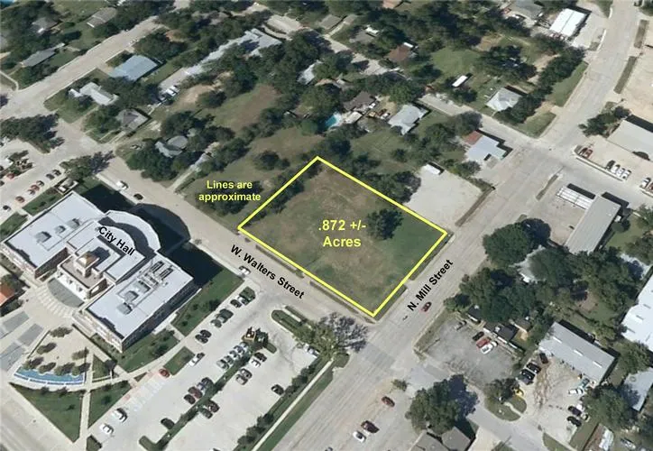 Corner lot in Old Town Lewisville situated at the intersection of 2 major streets, Walters St and Mill St, adjacent to City Hall. This Prime Location with High Visibility and Mixed Use Zoning offers multiple development possibilities. Buyer to verify all info.