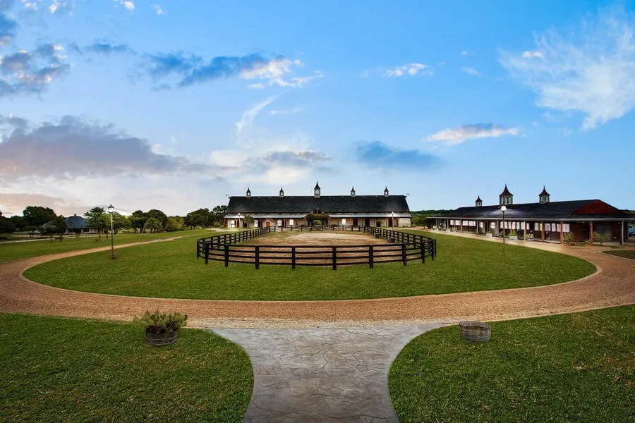 A spectacular world-class equestrian facility, perfect for training virtually any equine discipline. Located just north of the DFW Metroplex in Bartonville, Texas. This property is situated on approximately 100 acres in the heart of North Texas horse country and is only 20 minutes from DFW airport. This stunning, French Normandy style horse farm was originally built in 2001 as an English dressage training and breeding facility and is currently a cutting horse training operation. Constructed with the utmost quality in design and craftsmanship, this is truly an extraordinary property with multiple residences. The sellers have made many renovations to the property since their ownership. The show barn was designed with Normandy-style cathedral ceilings and has 20 stalls, two climate controlled tack rooms, two large, tiled wash racks, laundry room, conference room and full bath...
