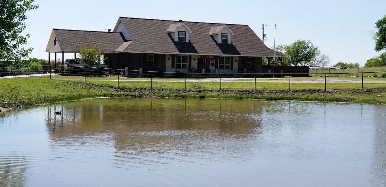 Country charm at its best! Less than ten minutes from I-35 and Sanger, home sits on rolling 12 acres (plus or minus) that boast beautiful sunrises and sunsets. Spacious two story home features over 3,800 sq ft with open floor plan, wood burning fireplace, alder wood cabinets, five bedrooms (master downstairs), three full baths, office-bedroom and additional game or media room upstairs. Property includes large mature trees, fenced and cross fenced pastures, pond, 47 X 35 workshop with 1 bedroom, 1 bath living quarters, two 12 foot roll up doors, 4 stalls, and tack room. Information deemed reliable but not guaranteed. Buyer and buyer's agent to verify that all information contained herein is accurate.