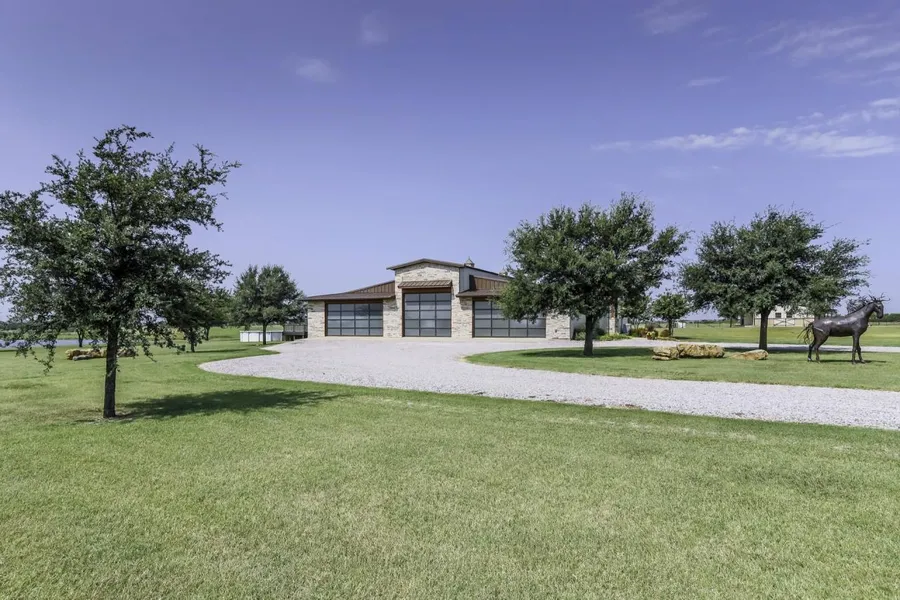 Incredible property with stunning Barndominium, Barn, and Shop all on 53 +- acres! Passing thru the gated entrance you are greeted by great architecture, stone work, and a 4 acre pond 20 feet deep and stocked with Bass. Inside the home clean modern lines, wood flooring, and gorgeous details like vaulted ceilings, a stone fireplace, and recessed lighting create a comfortable atmosphere. Enjoy custom features including a walk in pantry, wet bar, granite kitchen counter tops with bar top seating, large sun room overlooking the pond, and custom master bath with walk in shower. The 4 stall barn has water and power, auto water feature, and 330 sq ft of storage. The 60 x 23' 5 car garage offers ample storage, over sized doors, and additional boat and horse trailer enclosed parking.