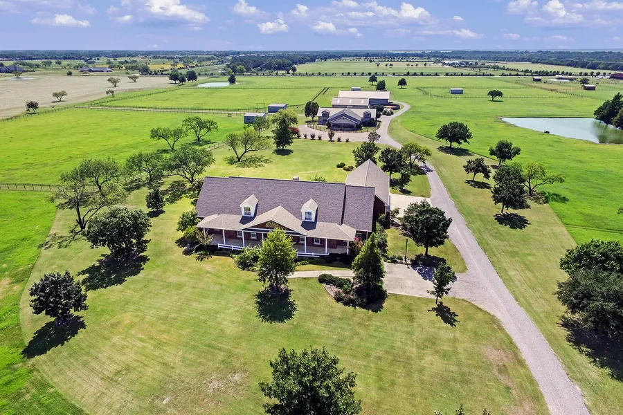 The iconic 75-acre Unnerstall Farms estate in Oak Point Texas offers a spacious, scenic setting and fabulous location between Frisco, Denton, and Lake Lewisville. Meticulously maintained throughout, it features a striking home and several attractive outbuildings. Producing premium award-winning coastal hay since 2000, the acreage is an ideal set-up for horses, recreation, or future subdivision with two sides of road frontage.