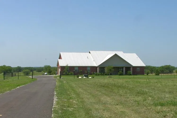 Attractive one owner custom claystone home with metal roof, on approx 9.5 ac in Aubrey with Great Hilltop Views! Home offers an open floor plan great for entertaining. Interior features include stone fp, spacious kitchen, large master with sitting area and large walk-in closet with safe room, beautiful concrete floors throughout. A wonderful country setting just 8 minutes from Loop 288. Buyer to verify all information.