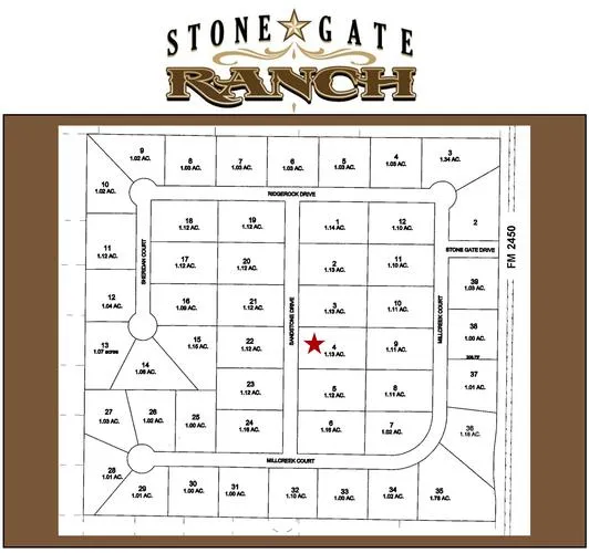Research Parcel InformationFrom FM 455, south on FM 2450, Stone Gate is on the west side of FM 2450 in approx 2.5 mi