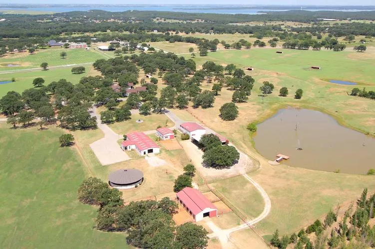This stunning 84 acre estate offers a sprawling custom spanish-style home designed for entertaining, an inground pool, guest apartments and equestrian facilities on some of the prettiest land you will find around Lake Ray Roberts' horse country corridor. From the home's private setting, there are beautiful panoramic views over rolling fenced coastal pastures dotted with grand-daddy oak trees, ponds and a 3-acre lake.