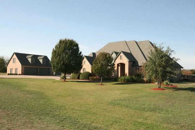 Located in a beautiful area of upper-end properties within a mile of Lake Ray Roberts and a state park, this stunning acreage estate features a fabulous custom home, a matching shop with apartment, pool, covered RV/Boat parking, a pond and a deep water well.