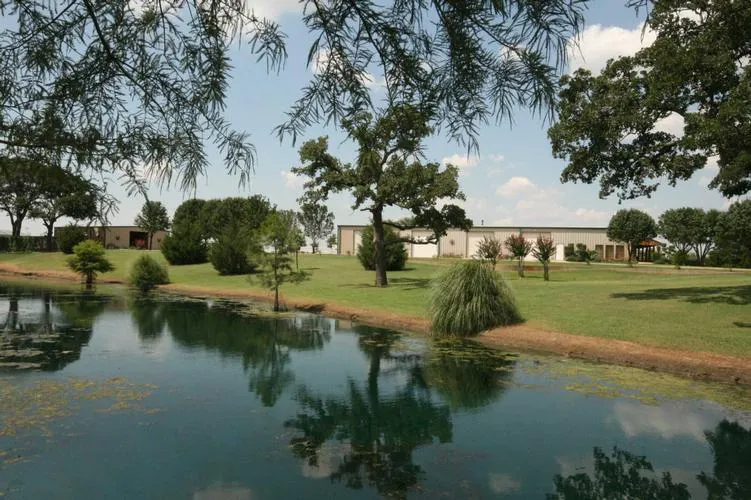 With a 4.25 acre park-like setting, 10630 Bobbi Lane in Pilot Point features a 6,500 square foot metal building, spacious living quarters, a horse barn, green house and a pond.