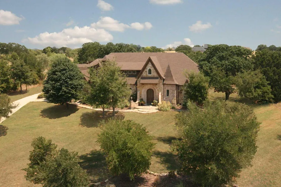 Located in the exclusive gated neighborhood of Forest Hills, this lovely home offers a wonderful design for family and entertaining. Built in 2008, its European Country styling and elevated setting provide a striking curbside appearance. Offering approximately 4,195 square feet of interior living space, the two-story layout features a vaulted wood beamed ceiling and stone fireplace in the family room, a beautiful kitchen with gas cooktop and double convection ovens, granite counters; casual and formal dining areas, a peaceful master bedroom that is tucked away from other bedrooms and living areas, a private guest retreat with vaulted wood beamed ceiling, fireplace, kitchenette, full bath and covered patio, a study with covered patio, 2 upstairs bedrooms the kids will love, a playroom and a large unfinished bonus area that is perfect for finishing out as game and media rooms. The combination of textured walls and ceilings, distressed hardwood and tile floors, custom millwork, granite and tumbled marble countertops all provide a casual, yet elegant atmosphere. The private backyard can be enjoyed from an inviting entertainment area that features a covered patio with vaulted wood ceiling, an outdoor rocked fireplace, a built-in gas grill and a rock bar.